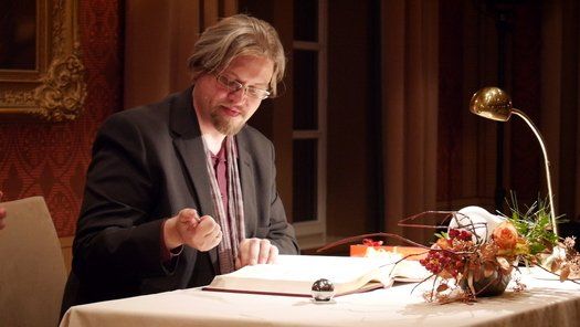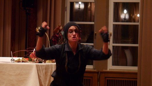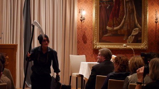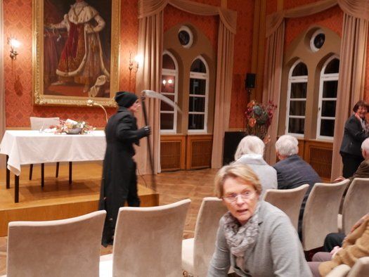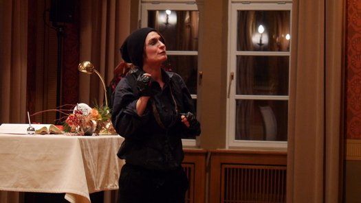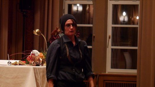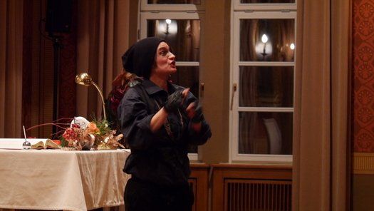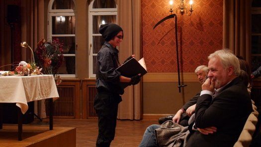 Mit Auszügen aus seinem Solo-Stück „Der Boandlkramer sucht sein Paradies", mit der immer wieder grandiosen Olivia Wendt als Tod, nahm der offizielle Teil sein Ende. Mit den Worten „wir sehen uns!“ als Erinnerung hat die Figur aus Falco Blomes Feder nochmal Lust gemacht auf mehr von diesem vielseitigen Theatermacher.