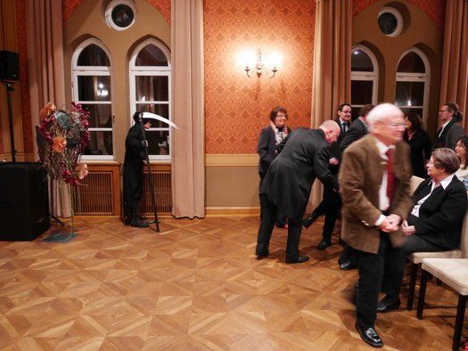Der Theaterregisseur Falco Blome erhält den Kulturförderpreis 2014 der Stadt Pfaffenhofen. In einem sehr ungewöhnlichen Festakt wurde der diesjährige Preisträger Falco Blome im Rathaussaal geehrt. Sogar „Der Boandlkramer“ persönlich gab sich und seiner Sense die Ehre.