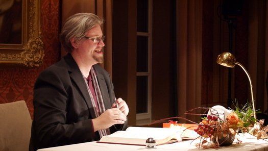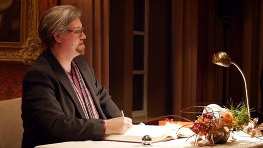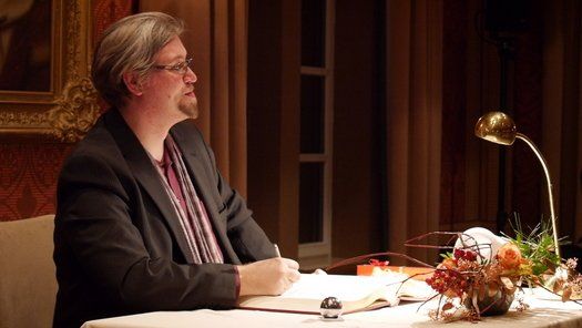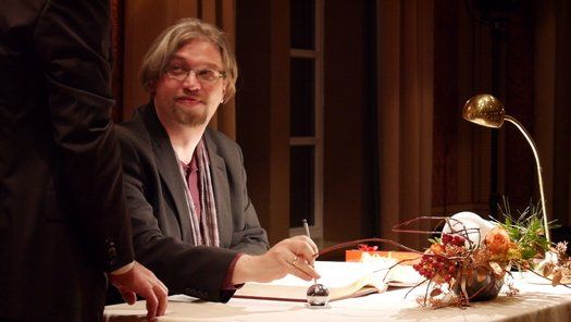 Auf eben solcher ist er zuhause, der gebürtige Bremer Falco Blome, der am Schyren Gymnasium seine bayerische Sozialisierung genießen durfte. Das hat Spuren hinterlassen, die Kulturreferent Rainhard Haiplikin seiner umfangreichen Laudatio aufzeigte. Der Preisträger nahm die ihm entgegengebrachten Ehrungen mit amüsierter Fassung und bedankte sich höflich in Form seiner eigenen Inszenierung.