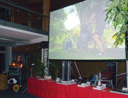 Dirk Rohrbach, Radiomoderator bei Bayern2, ist bekannt für seine außergewöhnlichen Reisen durch ganz Amerika. Auf seiner letzten Reise war er über drei Monate mit dem Rad unterwegs und zwar von New York bis nach Los Angeles. Von den interessanten Menschen und den vielen Eindrücken dieser Reise ließ er am Samstagabend die Besucher im Sportpark Au teilhaben.