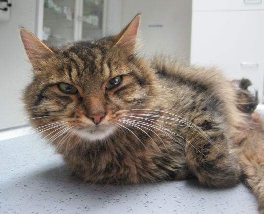 Am 29.11.2014 wurde in Appersdorf in der Abensstraße dieser Langhaarkater aufgefunden und beim Tierarzt als Fundtier abgegeben. Wir gaben dem Kater den Namen Richy. Richy hat eine alte Verletzung am Bein, die schon verfault war.