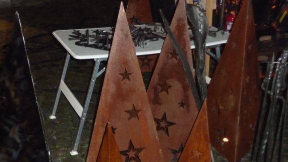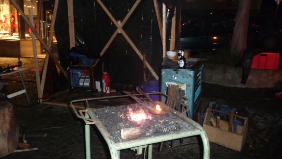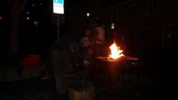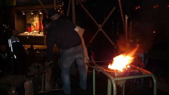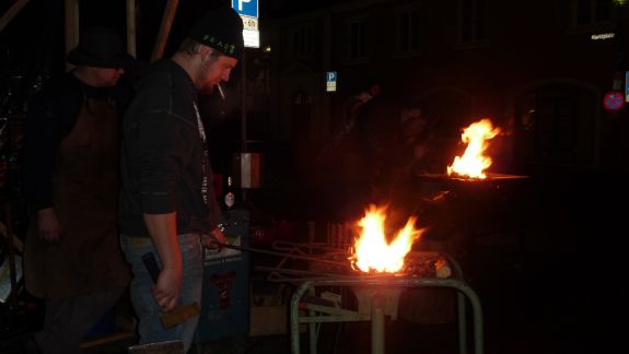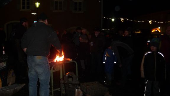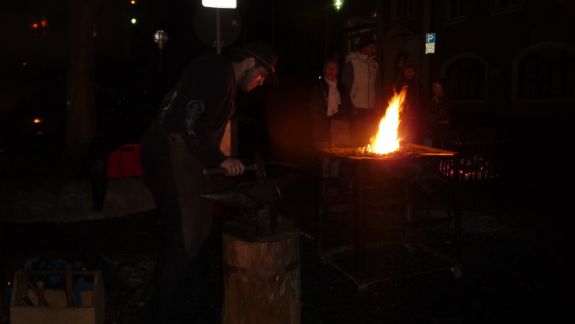 Wer es mehr handwerklich liebte, der war bei den Jungs der Bachleitenschmiede und Bergschmiede „Joas“ genau richtig. Der Umgang mit dem Feuer an offenem Lager mit glühendem Eisen, Hammer und Amboss faszinierte jeden vorbeischlendernden Besucher, besonders aber die Kleinen. Kräftig und gezielt wurde zugeschlagen, bis ihre Eisenteile in der richtigen Form waren und letztlich Sternschnuppen oder Laternen ergaben. Auf die Kinder wartete in der "Wichtelstube" ein Kinderschminken, in der am Sonntag noch einige andere Attraktionen für sie geboten sind. Auftritte der Moabuaga Volksmusik und einer Ensemblegruppe der Städtischen Musikschule sowie der Jugend-und Stadtkapelle ließen eine andächtige Weihnachtsstimmung aufkommen.