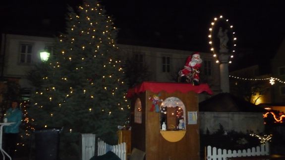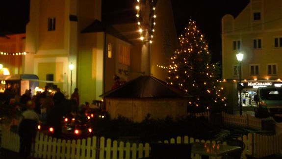 Einen besonderen Reiz bot der Christkindlmarkt in der abendlichen Dunkelheit eingebettet in ein Lichtermeer von Kerzen und Beleuchtung, Glühweinduft und Weihnachtsliedern. Von Würstl über Crêpes bis Apfelstrudel, von Zuckerwatte bis hin zu hochwertigen Pralinen war alles geboten, was des Bummlers Herz erfreuen konnte. Vertreten waren an Ständen der Rotary Club, die Narhalla Mainburg, die Kolpingsfamilie, die Fairtrade Gruppe, der Hallertauer Trachtenverein, die Landshuter Werkstätten, der Jagdverein Mainburg, die Blumenfrau Sarah Schloderer, das Café Beiss und einige mehr.