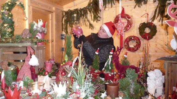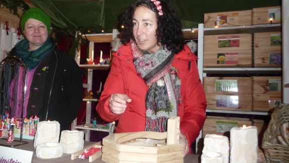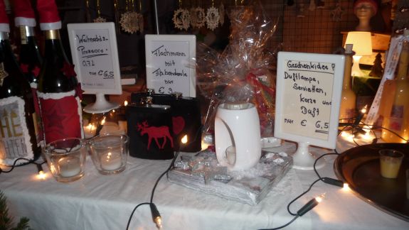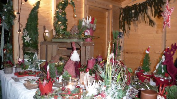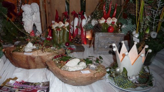 Fehlen durfte natürlich nicht Glühwein, Ministrantenpunsch und der gute alte Jägertee – und das alles zwischen Schmuck, textilen Erzeugnissen, weihnachtlicher Zierde und jeder Menge Floristik. Auch selbstgemachte Naturseifen aus hochwertigen Ölen und eine Auswahl an liebevoll gestaltetem Kinderspielzeug wie der „Reckturner“, ein beweglicher Akrobatturner aus Holz, gab es zu kaufen. Schenken konnte man aber auch „5 Minuten Advent“ für gestresste Menschen, ein Säckchen bestehend aus einem Likör, einer Kerze, einer Weihnachtsgeschichte, Plätzchen und einem Zettel mit der Anordnung: "Handy ausschalten und Beine hochlegen".