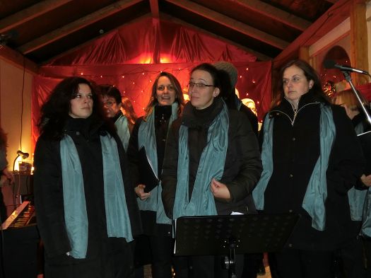 Im extra aufgestellten Pavillon trat am frühen Abend der Gospelchor "Soul of Mosaic" aus Nandlstadt, der heuer 5 jähriges Bestehen feiert, mit Weihnachtsliedern auf.