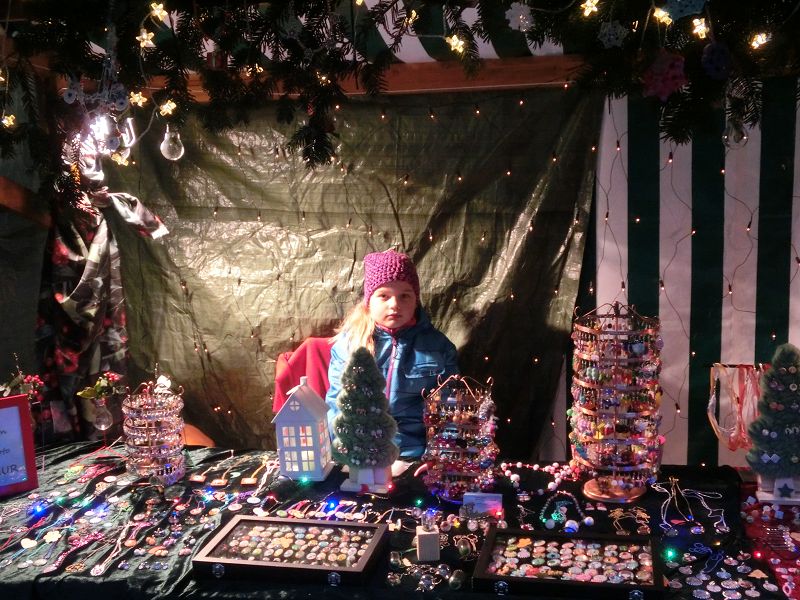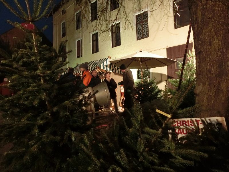 Zahlreiche Besucher kamen schon am Nachmittag und bestaunten das vielfältige Angebot. Sehr schön dekoriert, flankiert von 2 Christbäumen am Eingang an der Hauptstraße, konnte man nicht nur allerlei Nützliches erstehen, wie selbstgestrickte Wollmützen oder Weihnachtsschmuck, sondern sich neben Glühwein und Stollen auch deftige Schlemmereien schmecken lassen. Ein Stand der Krippenfreunde Nandlstadt stellte wunderschöne selbstgebastelte Krippen, im Stil alter Bauernhäuser, und die dazugehörigen Krippenfiguren aus. Auch Christbäume wurden schon fleißig gekauft, für die Kinder gab es sogar ein Kinderkarussel.