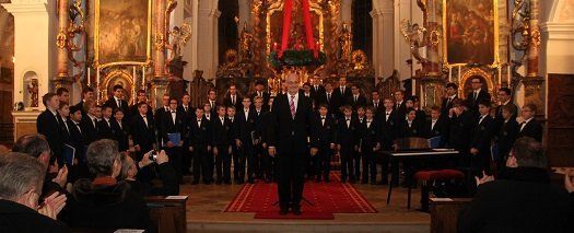 Innerhalb kürzester Zeit waren die rund 500 Karten verkauft und die Kirche dann auch bist auf den letzten Platz gefüllt, als Domkapellmeister Roland Büchner mit wenigen Sängern im Seitenschiff „Creator Alme siderum“ anstimmte und der Chor in den Dom der Hallertau einzog. „Es freut uns sehr diesen weltberühmten Chor wieder in Wolnzach begrüßen zu dürfen“, so Alois Siegmund.