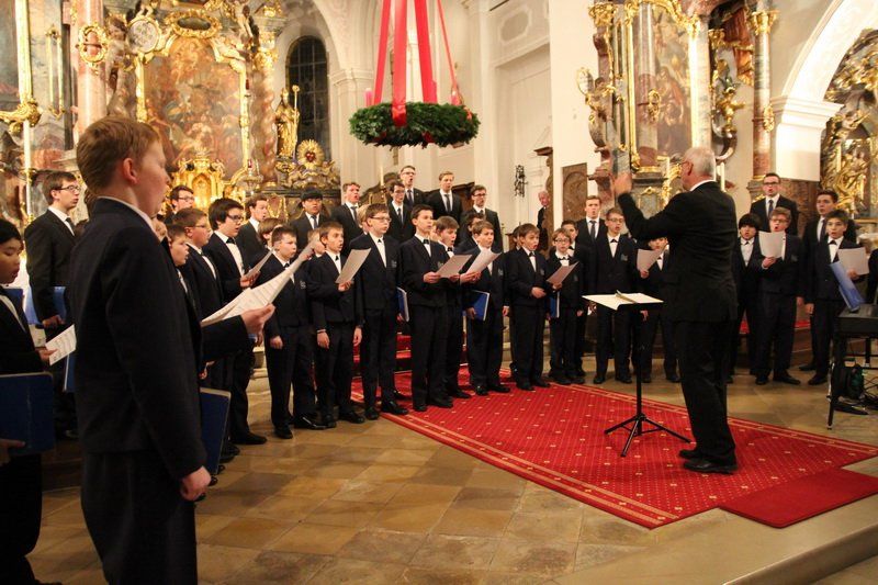 Mehr noch freute ihn, dass dies zum Abschluss des Jubiläumsjahrs gelingen konnte. „Die Domspatzen haben ein anderes Konzert abgesagt, um in Wolnzach singen zu können“, fügte er weiter an. In den kommenden 90 Minuten hüllte der Chor, bestehend aus 36 Knaben- und 22 Männerstimmen, die Pfarrkirche in festliche und weihnachtliche Stimmung. Im Repertoire hatten sie nicht nur Klassiker wie „Adeste, fideles“ und Weihnachtslieder aus der bayrischen Heimat, sondern ganz moderne englische Lieder wie „Go, tell ist on the mountain“ und umspannten damit viele Jahrhunderte.