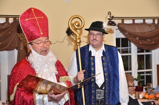 Nach dem gemeinsam gesungenen Weihnachtslied "Süßer die Glocken nie klingen" kam auch noch der Nikolaus, alias Martin Lengfelder, zu Besuch und wusste, aus seinem Goldenen Buch - mit immerhin stolzen 28 Seiten Umfang - lesend, in gereimter Form noch vieles über die fleißigen Helfer aus dem Verein zu berichten. Wie man es von Martl ja kennt, hatte er natürlich auch drumherum noch einiges Lustige aber auch Nachdenkenswerte zur Adventszeit zu sagen.