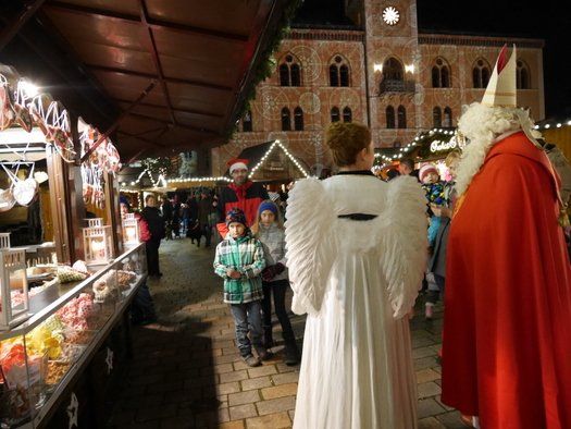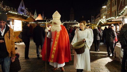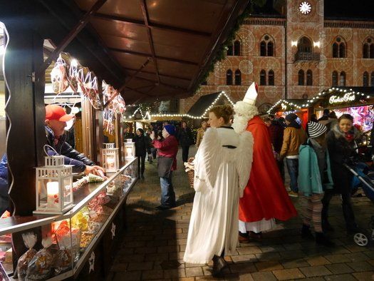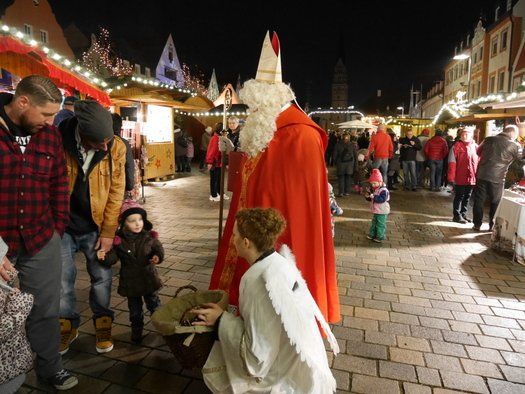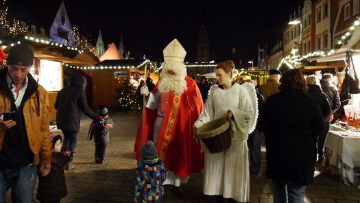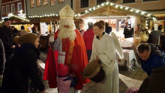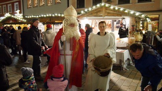 Der Nikolaus hat, in Begleitung eines Engels, am Samstag kleine Geschenke an die Kinder der Besucher des Weihnachtsmarktes in Pfaffenhofen verteilt. Leuchtende Kinderaugen und dankbare Eltern, der weiß-rote Heilige erfüllte seinen Auftrag gewissenhaft und seiner Rolle angemessen.