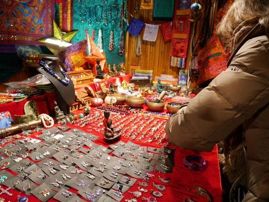 Seltenes aus Scholkolade, nicht nur zum Essen, Tibetanisches aus erster Hand, mit einer passenden Geschichte aus der Heimat des Dalaih Lama dazu, Handgefertigtes aus Afrika oder Gedrechseltes zum Mitnehmen. Vielfalt ist angesagt, Industriedeko verpönt, bunt darf es sein und klassisch glitzernd.