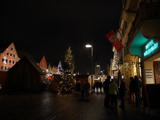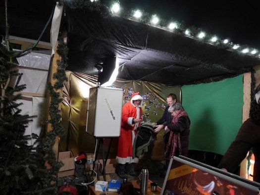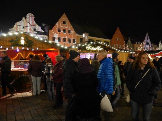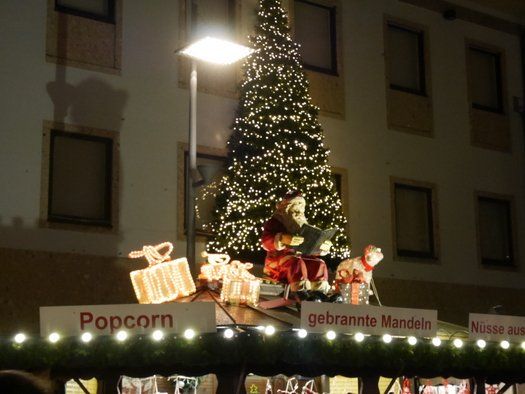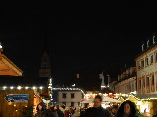 Eine schöne Geste des Weihnachtsmarktbetreibers, dieses jährliche Ritual von 16:00 bis 18:00 Uhr. Natürlich gab es an diesem Tag noch andere Attraktionen. Die Blechbläsergruppe „Die lustigen Holledauer“ spielten auf der Bühne vor dem historischen Rathaus weihnachtliche Weisen. Der Wichtel sprang für einen krank gewordenen Vorleser ein und versammelte Kinder und Erwachsene im Bastelzelt bei spannenden Geschichten.