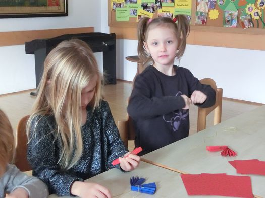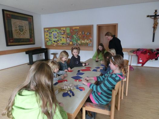 Danach ging es gemeinsam ins Pfarrheim zum Basteln: Auch hier wieder das Thema "Engel": Jedes Kind konnte mit Hilfestellung von Doris Bauer einen wunderschönen Engel selber basteln und nach Hause mitnehmen.