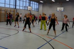 Alle Wolnzacher Zumba-Begeisterten, Interessierten und Vereinsmitglieder waren vom SVG herzlich dazu eingeladen, bei der kostenlosen Party einmal vorbeizuschauen, ein wenig mitzutanzen und Zumba-Luft zu schnuppern. „Das ist einfach der einzige Sport, der Spaß macht und bei dem man nicht merkt, dass man Sport macht“, erklärte eine Tänzerin den Reiz des Zumba. Der aus Kolumbien stammende Sport liegt derzeit voll im Trend und erfreut sich stetig wachsender Beliebtheit. Meist zu fetzigen Salsa- und Merengue-Rhythmen wird dabei der ganze Körper bewegt und verschiedene Muskelpartien trainiert.