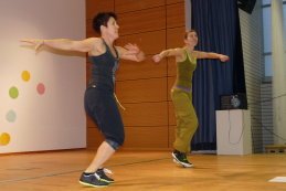 Doch warum ist Zumba eigentlich gerade unter Frauen so beliebt? „Weil es ein sehr gutes Ausdauertraining ist und man angenehm ins Schwitzen kommt“, stellte Renate Merkl klar. „Und natürlich hat man auch den positiven Nebeneffekt, dass man fleißig Kalorien verbrennt“, fügte Marietta Kolb zudem an. An erster Stelle steht bei den beiden Trainerinnen aber vor allem eines: Gemeinsam Spaß zu haben. „Wir hoffen, ihr habt heute besonders viel Freude bei all unseren Songs und Tänzen des Jahres“, begrüßten sie ihre Gäste.
