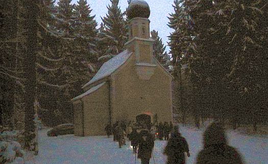 Schließlich am Ziel angelangt, erwartete die Wanderer das Waldkirchlein „St. Simon“, wo man in der Kirche, die wunderschön mit Kerzen und Teelichtern beleuchtet war, eine kurze Andacht hielt. Mit Fackeln und Taschenlampen machte man sich nun auf den Weg Richtung Pötzmes. Trommeln und die „Holledauer Perchten“, die mit ihrem furchterregenden Anblick böse Geister vertreiben sollen, bildeten den Abschluss dieser wahrhaft wunderbaren Winterwanderung. Mit Punsch und Broten ließ man den Abend gemütlich ausklingen.