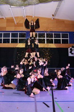 Nach der Hallenverlosung von drei Auftritten sowie den obligatorischen Dankesworten an zahlreihe Helfer bildete der Auftritt der VivaGirls&Boys den fulminanten Höhepunkt des kurzweiligen Nachmittags. Die mittlerweile mit drei Jungs verstärkte Gruppe von 21 Frauen zeigte die höchsten Hebefiguren seit ihrem Bestehen, die teilweise bis unter den Fallschirm reichte, der unters Hallendach gehängt wurde. Begeistert war das Publikum, dass sich die Gruppe jedes Jahr etwas Neues einfallen lässt, um ihrem Programm neue Höhepunkte zu verleihen. Der langanhaltende Applaus entlohnte alle Aktiven jedoch für die vielen Trainingseinheiten in den letzten neun Monaten, die für einen nahezu 20-minütigen Auftritt notwendig sind. Verantwortlich für einen Großteil des neuen Programms war Sandra Schiekofer, bei welcher man sich herzlich dafür bedankte. Erhard Gagger, sowie Corinna Baum und Lena Laible aus der Reihe der eigenen Tänzerinnen trugen ihr übriges dazu bei, dass die Show erfolgreich ablief.
