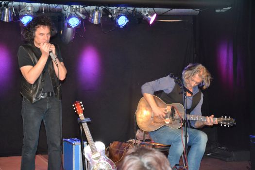 Beide waren so toll aufeinander eingespielt, dass es eine Freude war, ihnen nicht nur zuzuhören, sondern auch zuzusehen. Und dann waren da natürlich noch die launigen Zwischenbemerkungen von „Sir“ Oliver, der sich zum Beispiel für seinen Partner den Adelstitel „von“ gewünscht hätte, Hubert von Hofherr nämlich. Oder die Erklärung, dass in Österreich der Songtitel „see you in the morning“ als „sieben Uhr in the morning“ verstanden wird. Den Song „Butterfly girl“ bezeichnete Mally als Menschenmusik, aber eigentlich sein jede Musik Menschenmusik, „oder haben Sie schon einmal ein Pferd beim Musik machen gesehen?“, so Mally scherzhaft. Bei „my old friend the Blues“ ging dann richtig die Post ab, wie es so schön heißt. Beide Musiker waren so in ihrem Element, dass sie eigentlich eine ganze Band ersetzen konnten. Mally brachte die Songs in den verschiedensten Stimmlagen, leise, aber dann auch wieder brachial laut um dann kurz darauf wieder in einen rotzig frechen Ton zu verfallen, so wie bei „sugar coatet love“. Bei „stack at the airport“ holte Hubert Hofherr dann wirklich alles aus seiner Harp in einem Solo raus, so dass die Zuhörer begeistert klatschten. Und ohne Zugabe konnten die beiden Musiker natürlich nicht die Bühne verlassen.