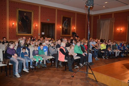 Mit drei Puppenspielern sowie einem Musik-Duo mit Gamba und Cembalo wurde der Abend im Rathaussaal unterhaltsam gestaltet und die Kinder hatten immer wieder Grund zum Lachen, die Erwachsenen konnten zumindest schmunzeln. Hinter der Bühne wirkten als Puppenspieler Susanne Forster und Stefan Fichert. Konrad Wipp wirkte abwechselnd sowohl hinter der Bühne als auch davor als Erzähler, Sänger und Mitspieler, wobei er gelegentlich zwei Rollen sprach.