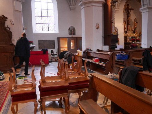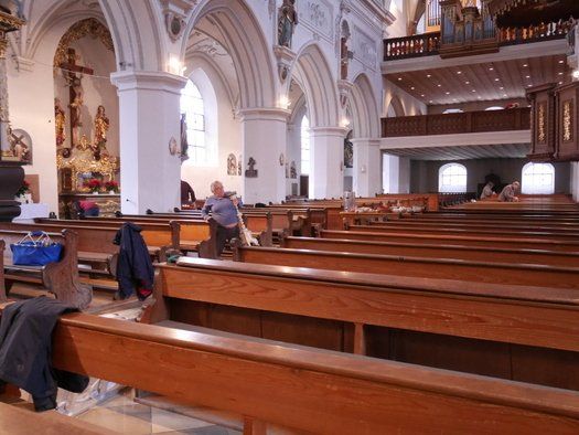 Leuchter, Kerzenständer, Weihwasserkessel, Chorgestühl oder eben auch alle Kirchenbänke, Beichtstühle und die Kanzel, den Damen und Herren des kirchlichen Putzkommandos entging nichts. So eine große Kirche ist entsprechend eingerichtet, die Katholiken lieben die barocke, bayerische Gemütlichkeit auch in ihrem Gotteshaus.