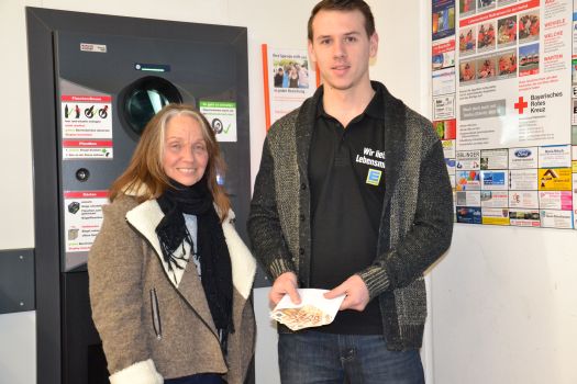 Eine kleine Box neben dem Pfand-Automaten aufzuhängen, bei der die Kunden ihre Kleinbeträge in Form von Pfand Bons einwerfen konnten, fiel bei Marktbetreiber Walter Pirker auf fruchtbaren Boden, so dass er spontan bereit war, die gespendete Summe aufzurunden. Pirkers Sohn Florian überreichte den Geldbetrag im „aktiv“-Markt an Eva Sindram. Die Spenden-Aktion läuft noch weiter, so dass weitere Pfand Bons eingeworfen werden können.