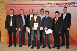 Der Vorstand der Feuerwehr nahm dies zum Anlass, Hans Prechter die Urkunde mit der Ehrenmitgliedschaft zu überreichen. Zuvor waren Vereinsmitglieder für langjährige Mitgliedschaft geehrt worden. Für 10 Jahre: Sandro Fischbach und Peter Köpf; Bernd Heber war an diesem Abend noch im Einsatz. Für 20 Jahre: Christian Amon, Stefan Satzger, Thomas Schmuttermayr und Adrian Schratt; wegen eines Einsatzes fehlte Stefan Metko. Für 40 Jahre: Ludwig Roßner; Hermann Urban fehlte leider. Und für 50 Jahre wurde Franz Nischwitz geehrt.