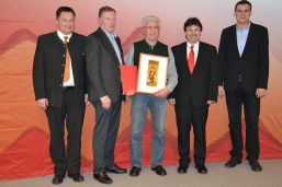 Ehrung für 20 Jahre (v.l. mit Urkunde): A.Schratt,Chr.Amon,St.Satzger,Th.Schmuttermayr Ehrung 50 Jahre: Franz Nischwitz