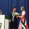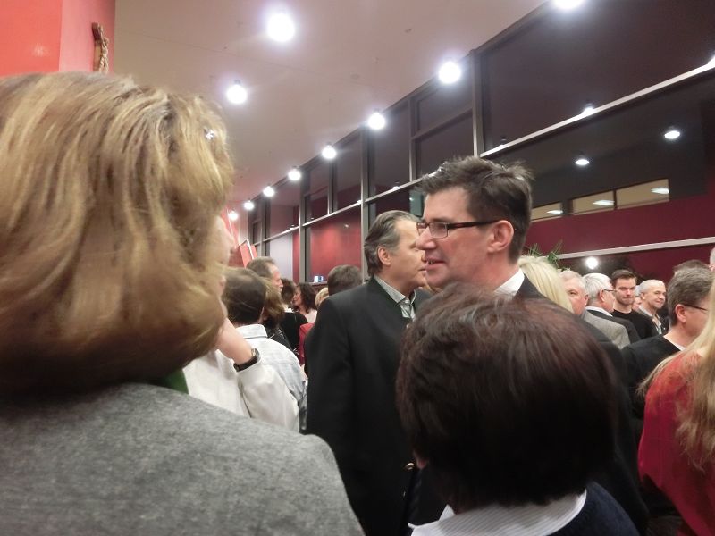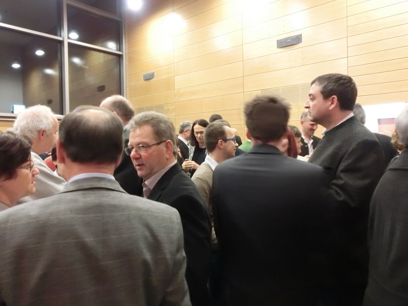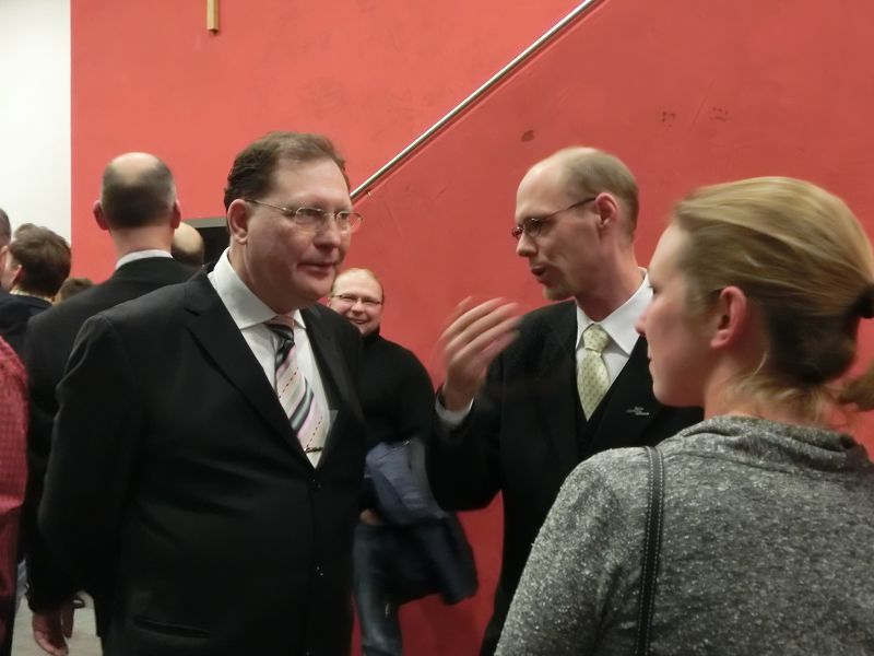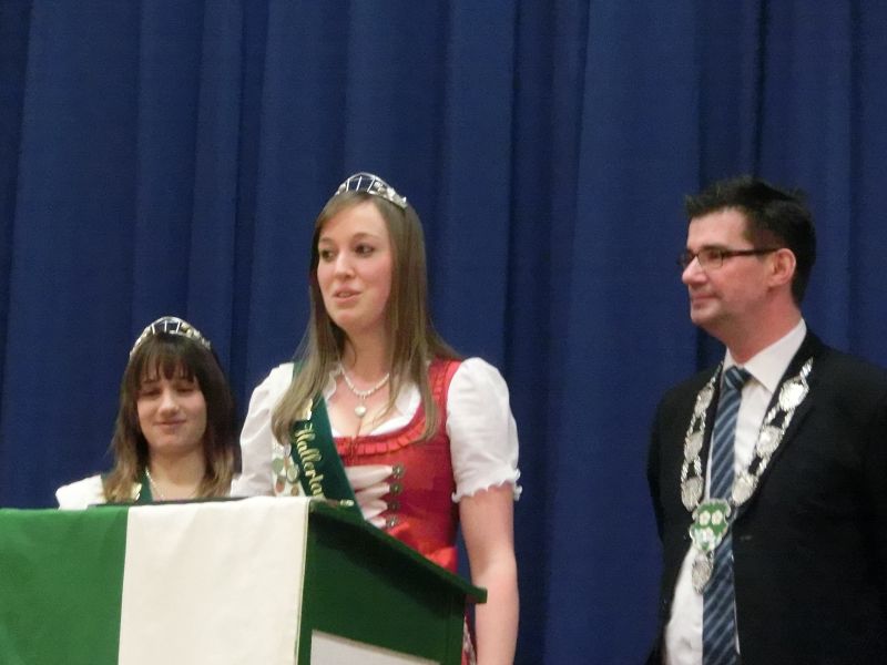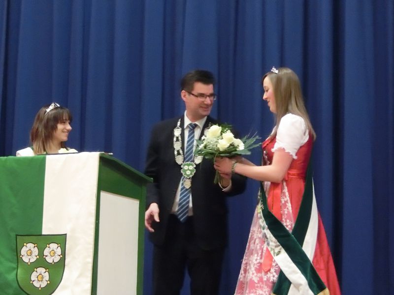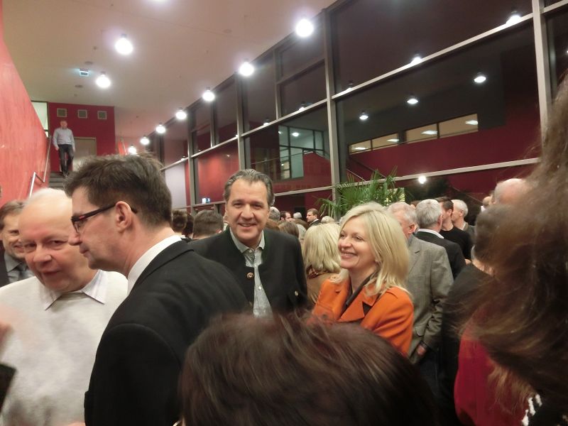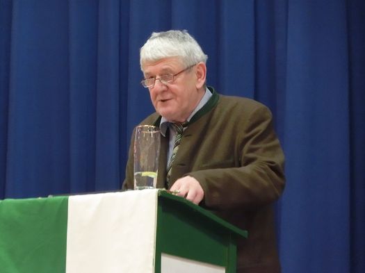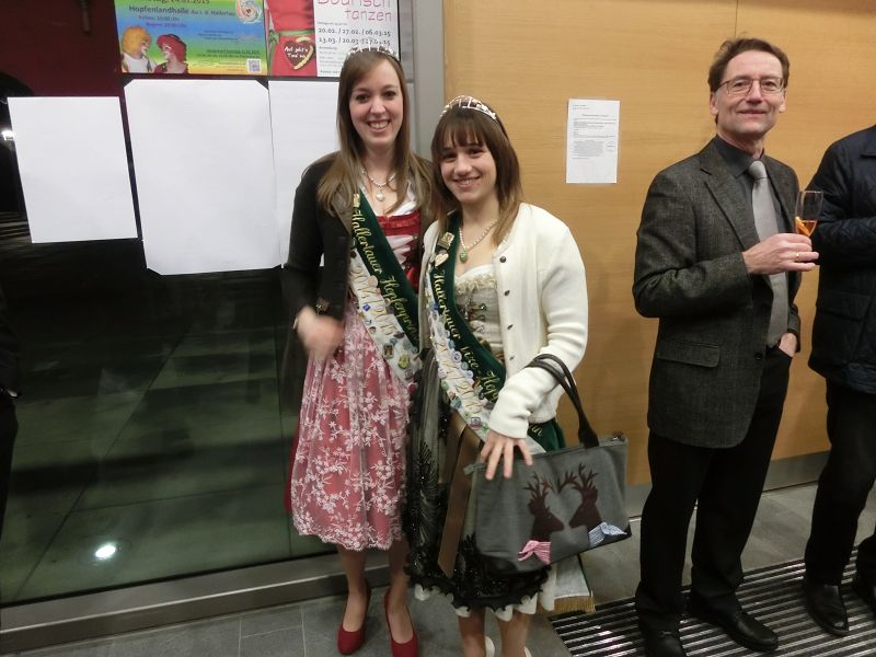 Nach einer ausführlichen Begrüßung, von den Hopfenhoheiten bis zu den beiden Auer Pfarrern, seiner Danksagung an seine Mitarbeiterinnen und Organisatorinnen des Abends, denen er auch , ebenso wie Hopfenkönigin - und prinzessin einen Blumenstrauß überreichte, übergab er das Mikrofon an Hans Neumaier, Ex - Vizelandrat von Freising und Holledauer Urgestein mit einem riesigen Fundus an Geschichten und Anekdoten aus der Holledau. Sein Thema: "Au im Spiegel der Zeit". Es gibt 2015 mehrere Jubiläen, darunter 425jähriges Bestehen der Auer Schlossbrauerei, da gäbe es am 1.April den ganzen Tag Freibier aus dem Marktplatzbrunnen, spendiert vom Bürgermeister persönlich!