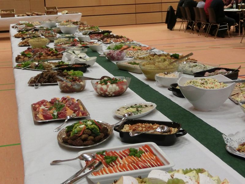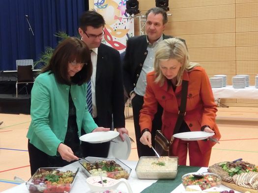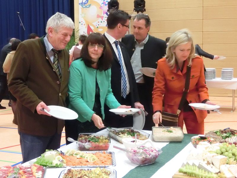 Danach hieß es dann: Das Buffet ist eröffnet, die beiden Redner sowie Baron Beck von Peccozz mit Gemahlin griffen als erste zum Teller. Der Huberhof in Airischwand war dieses Jahr der kulinarische Ausrichter, die Speisen auf der langen Tafel wurden von den Besuchern in den höchsten Tönen gelobt.
