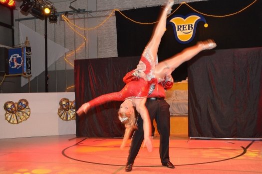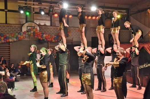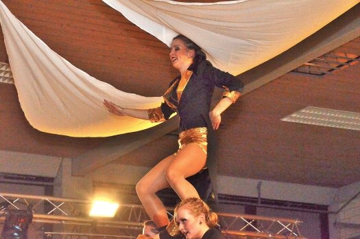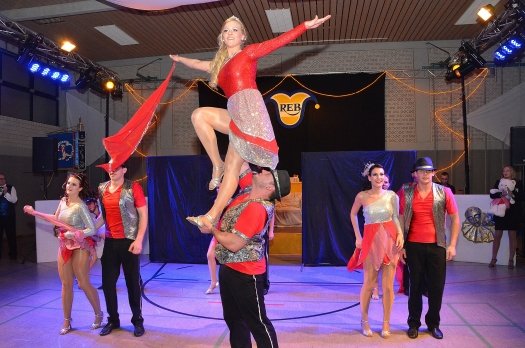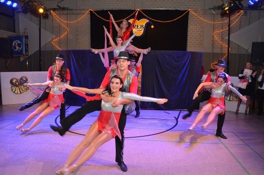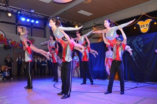Ihr Können stellten alle Garden vom Samstagnachmittag an bis in die Nacht hinein unter Beweis und natürlich ließen sich die Burschen und Mädel vom REB ebenfalls nicht lumpen und zeigten nunmehr bereits im zehnten Jahr in Folge bei ihrem großen Gardetreffen, was sie drauf haben. Und das war nicht von schlechten Eltern. Mit vielseitige Tanzdarbietungen und ebensolchen Kombinationen hielten die REBler mit ihrer Show, die in dieser Saison unter dem Motto "Dance in love" steht, vor mehreren Hundert Zuschauern locker mit. Obgleich bei den Herren schon mal die Schweißtropfen von der Stirn perlten, als sich die Mädels auf ihren Schultern zu einem atemberaubenden Turm formierten.