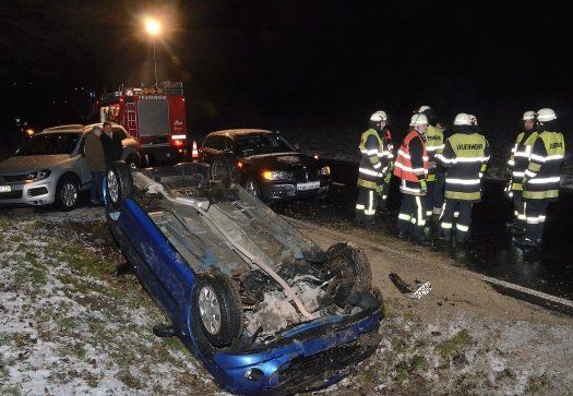 Auf dem Dach gelandet ist eine Autofahrerin auf der Langenbrucker Straße in Höhe des Kirchbergs. Gegenwärtig (Stand: 20 Uhr) dauern die Bergungsarbeiten an. Die Ortsverbindungsstraße zwischen Puch und Langenbruck ist wegen des Unfalls zur Stunde nur einseitig befahrbar.