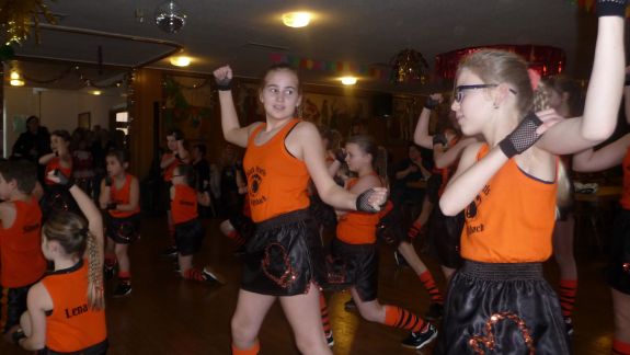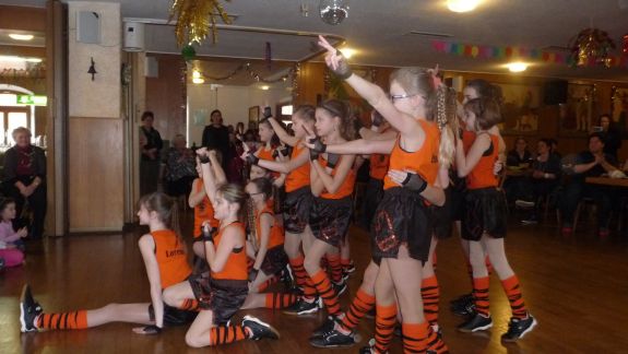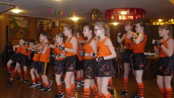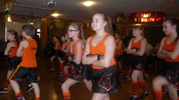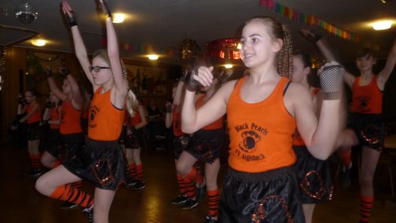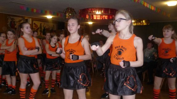 Den krönenden Programmpunkt bildeten dann die „Black Devils“. Besonders lobenswert ist die Tatsache, dass sich die illustre Truppe den Großteil der Choreographie im Selbststudium angeeignet hat. Mit viel Freude waren sie bei der Sache und ließen sich von ihren drei Jungs ganz schön umherwirbeln. Kein Wunder, dass hier alle „Feuer und Flamme“ waren.