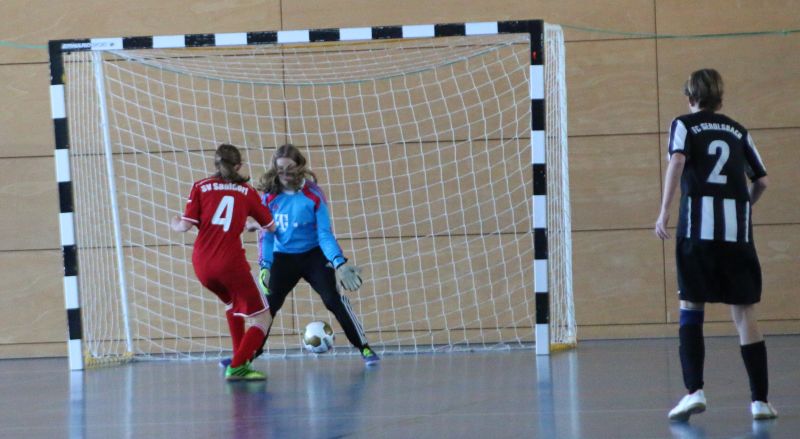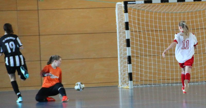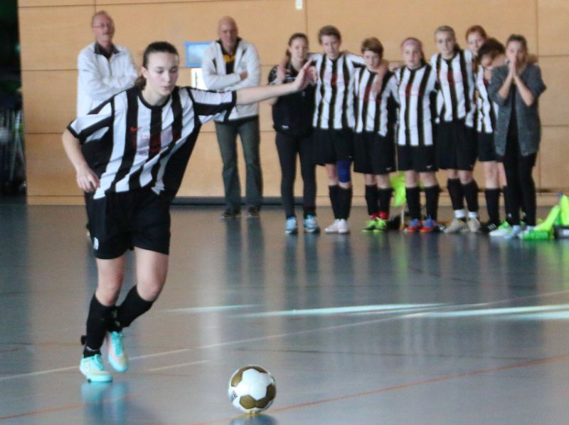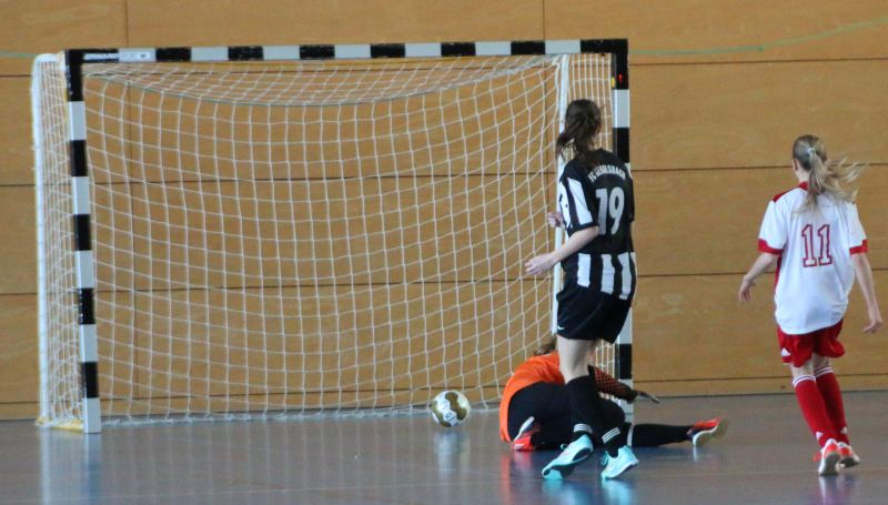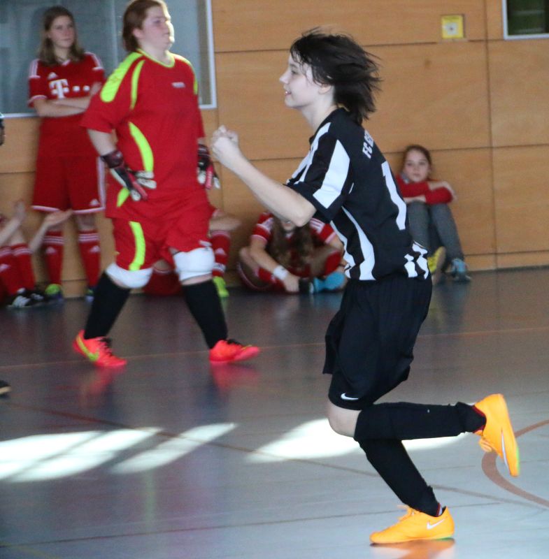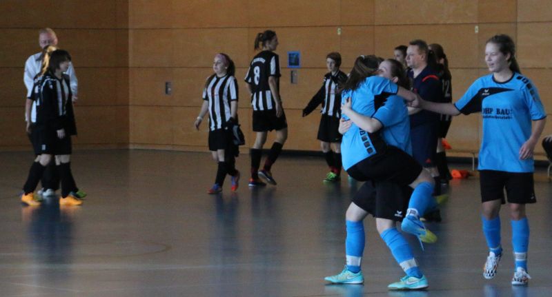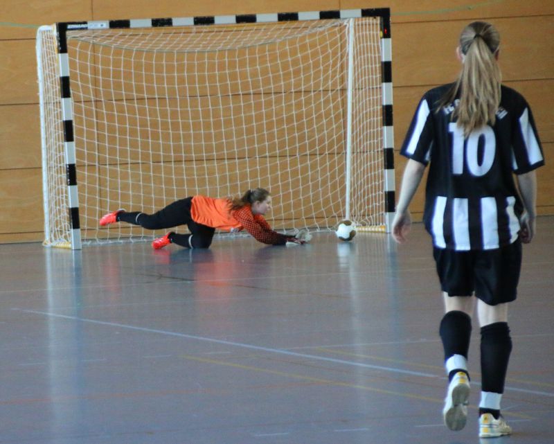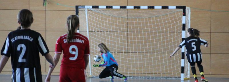 Das Halbfinale gegen die SG Altenmarkt/Trostberg war an Spannung kaum zu überbieten: den Rückstand nach wenigen Minuten konnten die Gerolsbacher/Scheyrer Mädels durch Tore von Lea Lugscheider und Johanna Roscher zunächst ausgleichen und dann in eine Führung umdrehen. Dass ein Spiel bei dieser Hallenmeisterschaft nun einmal 12 Minuten dauerte, mussten die Scheyrerinnen/Gerolsbacherinnen dann erkennen: denn nur 30 Sekunden vor Spielende musste man dem enormen Druck der wieder klassenhöheren Gegnerinnen Tribut zollen und kassierte doch noch den Ausgleich. Siebenmeterschießen - Nervosität auf beiden Seiten - die Anspannung der zahlreichen Fans aufs Äußerste angewachsen. Bei dem Shootout sorgten letztendlich 2 Faktoren für den Doch-noch-Erfolg der SG STS/FCG: die Sicherheit der eigenen Schützinnen, die bei ihren Siebenmetern keinen einzigen Fehlversuch zu verzeichnen hatten, und eine schier unüberwindbare Torhüterin Desirée Krauß, die gerade einmal einen einzigen gegnerischen Schuss passieren lassen musste.