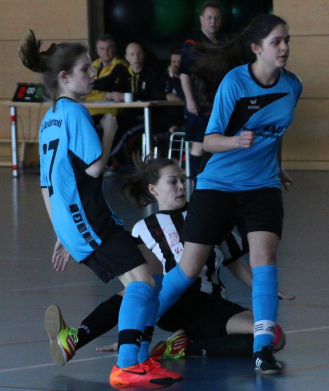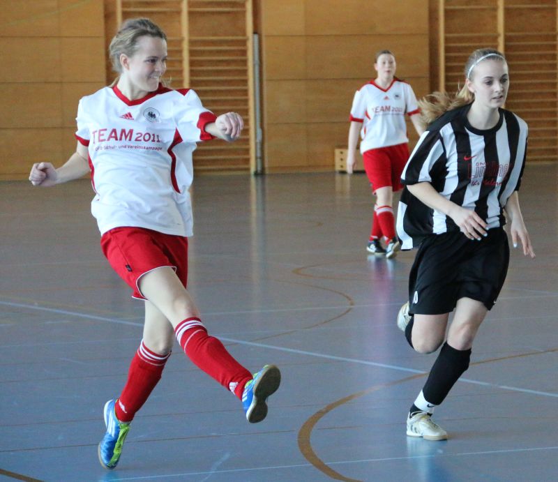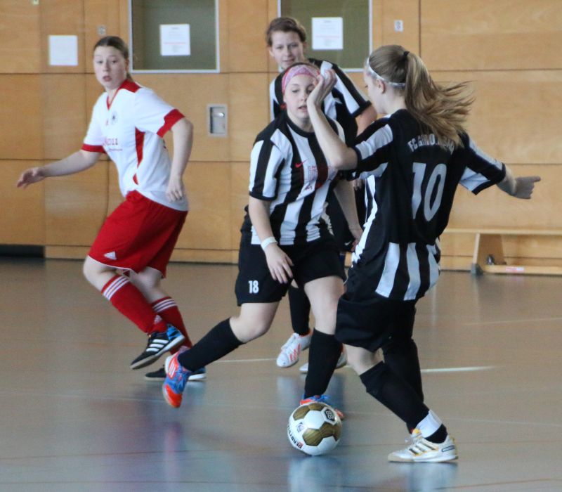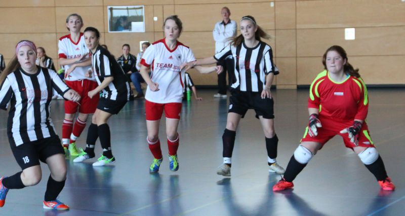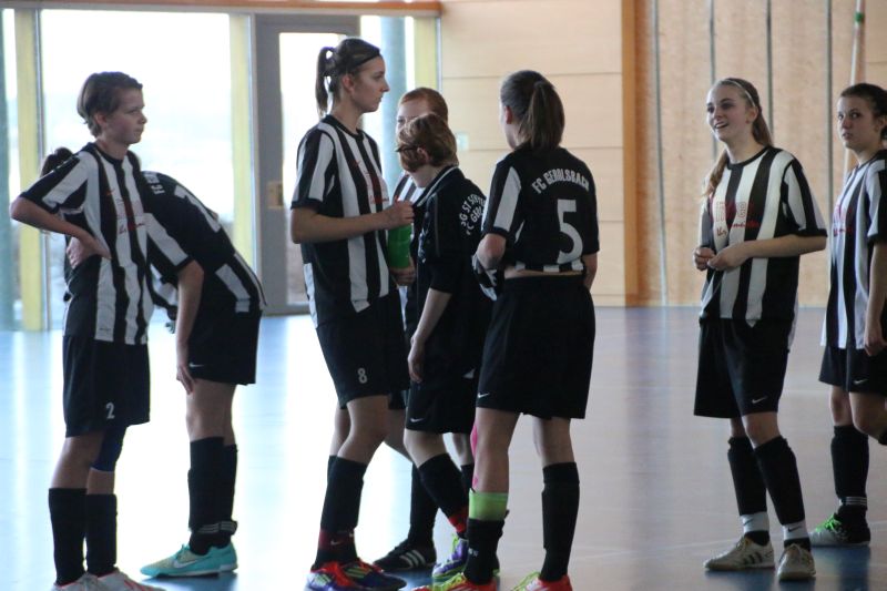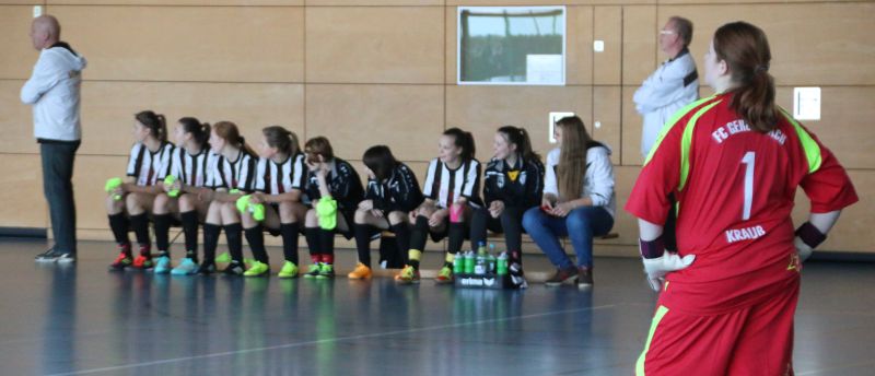 Und so kam, was vor Turnierbeginn niemand für möglich gehalten hatte: die B-Juniorinnen der SG Scheyern/Gerolsbach standen im Endspiel um die oberbayrische Hallenmeisterschaft! Es schien, als wäre den Mädchen erst jetzt so richtig bewusst geworden, was sie zu diesem Zeitpunkt schon erreicht hatten. Denn die Nervosität vor dem Endspiel war nicht mehr zu übersehen. Und so war es auch in erster Linie die Unkonzentriertheit der SG STS/FCG, die dem SC Gröbenzell (Bezirksliga) schon im ersten Spielzug den Führungstreffer bescherte. Als die Mädchen aus dem Münchener Nordosten kurz darauf auch das 2-0 erzielten, schien das Spiel gelaufen, zumal der Favorit sich auch nie wirklich aus der Ruhe bringen und den Ball laufen ließ sowie im ganzen Team äußerst kombinationssicher wirkte. Der Anschlusstreffer wieder durch Lea Lugscheider 3 Minuten vor Spielende kam zu spät, um das Spiel vielleicht doch noch einmal zu drehen.