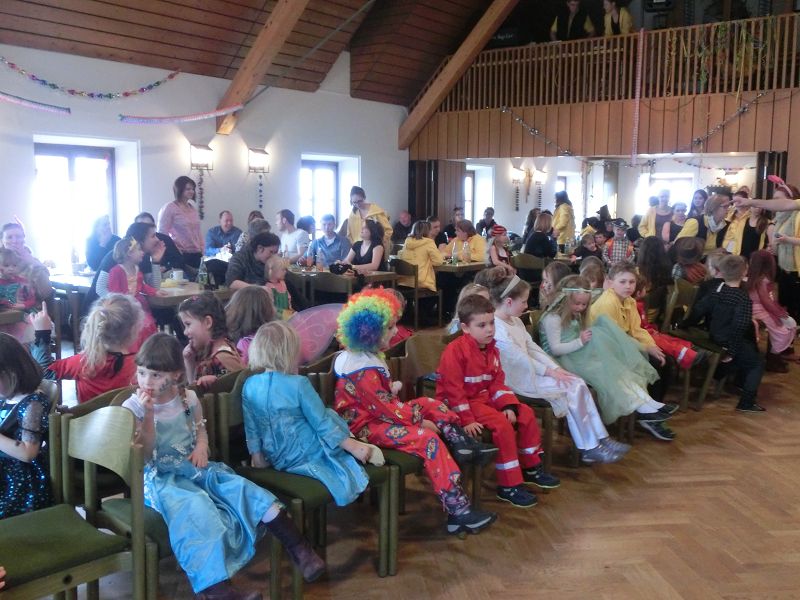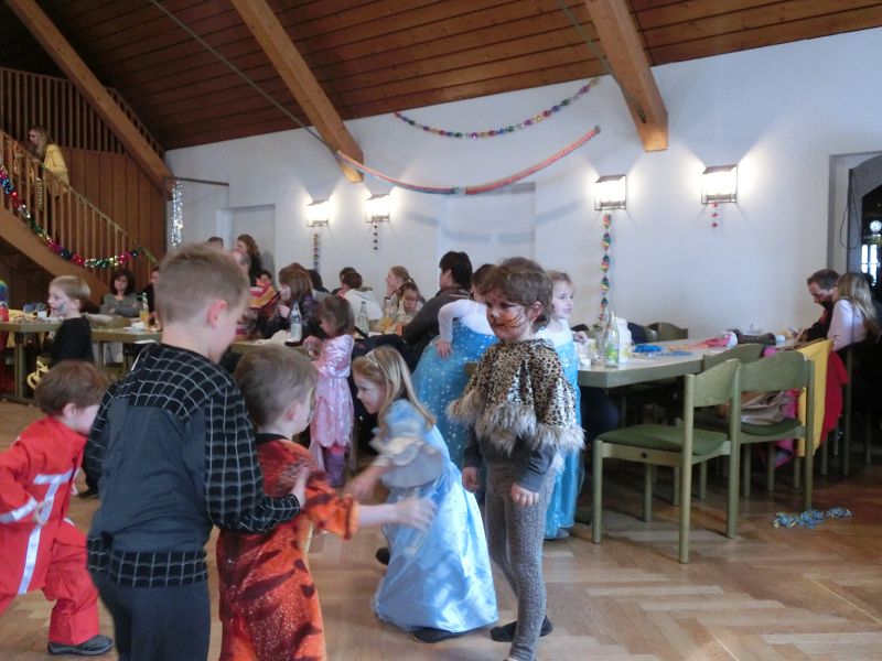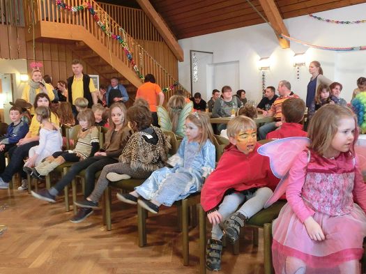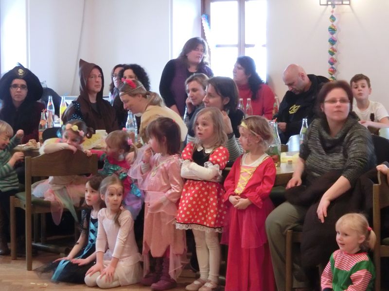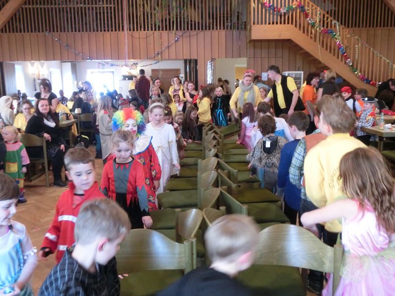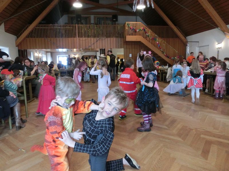 Vorsitzender und 2. Bürgermeister Jens Uwe Klein begrüßte die zahlreich erschienenen maskierten Kinder mit ihren, oft auch phantasievoll verkleideten, Eltern. Neben Kaffee und Kuchen und Getränken gab es flotte Musik zum Tanzen und Herumtollen, aber auch Showeinlagen der Dancing Angels Jugendgruppen und lustige Spiele. Bei der "Reise nach Jerusalem" stürzten sich an die 30 Kinder im Gänsemarsch auf die freien Stühle.