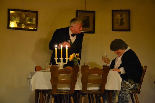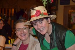 Und da wieder Faschingszeit war, kamen die meisten natürlich phantasievoll verkleidet und brachten gute Laune mit. Hinzu kam, dass ein Geburtstag gefeiert werden konnte und deshalb ein üppiges Kuchenbuffet aufgetischt wurde. Rosa Karger, eine der Initiatorinnen des Wirtshaussingens, kündigte als Highlight des Abends den Einakter „Dinner for one“ an, herrlich gespielt von Frank Nischwitz und Anita Rottenkolber. Die Gäste waren begeistert und spendeten lebhaften Zwischen- und Schlussapplaus. Und ohne übertreiben zu wollen kann gesagt werden, dass Frank Nischwitz als Diener James keinen Vergleich mit dem Original von Freddie Frinton zu scheuen brauchte. Nicht nur von der Sprache her, auch von der Mimik und Gestik war er mindestens gleich gut.