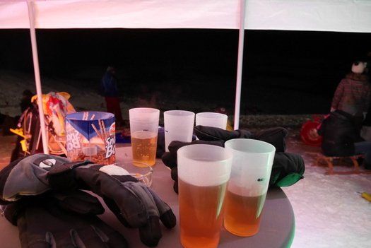 Wem beim Aufstieg noch nicht warm geworden war, konnte sich an der Schneebar mit warmen Getränken und Brotzeit eindecken. Heiße Musik und coole Typen, eine Riesengaudi bis spät in die Nacht. Manche Feste, aus einer Laune heraus geboren, werden wenn sie gut sind, einfach zur festen Einrichtung. Es würde mich nicht wundern, wenn demnächst an selber Stelle, ein lebenswerter Schlepplift gebaut wird. Der Feldgolfplatz gegenüber soll ja auch kommen, irgendwann wird die Weiberrast zur „EVENT ARENA“.