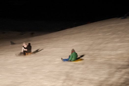 Bestens ausgeleuchtet von den Helfern des THW, präsentierte sich die Rodelpiste, bei eisigen Temperaturen, als echte Herausforderung für Jung und Alt. In der Mitte fahren, auf der Seite aufsteigen, Trassierbänder und Personal halfen nach rasanter Abfahrt, oder spektakulärem Sturz für Orientierung.