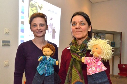 Polizeiexpertin Silke Wirth (l.) und Puppenspielerin Beate Welsch hoffen mit Hilfe umfangreiche Aufklärung der Eltern und einem Theaterstück auf minimalster Bühne für die Erst- und Zweitklässler auf einen Rückgang sexuell motivierter Übergriffe auf Kinder.