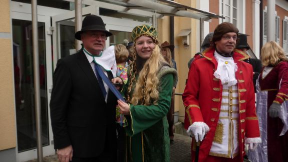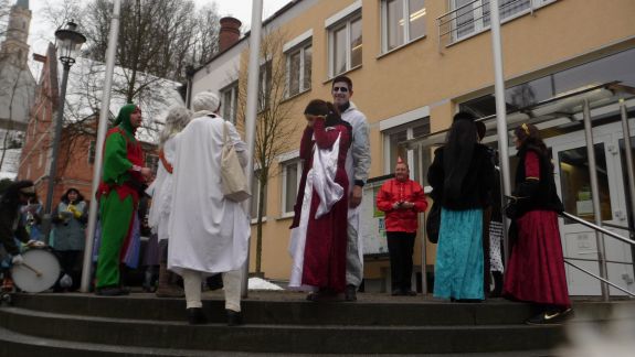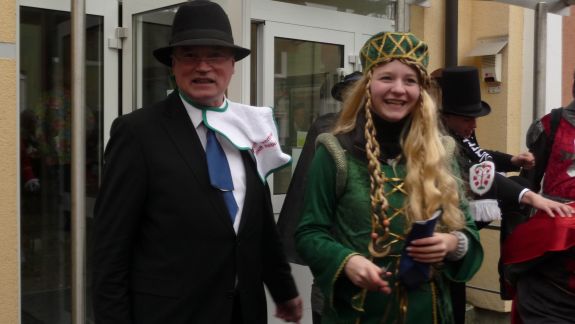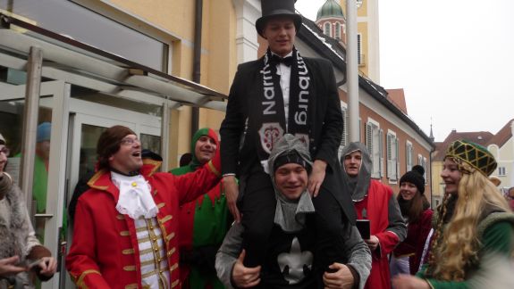 Am gestrigen „Unsinnigen“ war es wieder soweit: Die Narhalla um ihre Hoheiten Prinz Robert II. und Prinzessin Vanessa I. zogen durch die Mainburger Innenstadt und riefen den totalen Fasching aus. Natürlich steuerten sie auch traditionell das Rathaus an, wo sie von Bürgermeister Sepp Reiser empfangen und mit Wienerwürstel und Brezen verköstigt wurden.