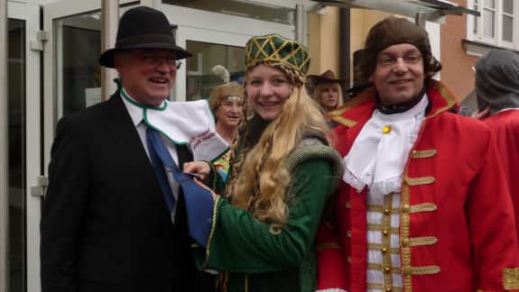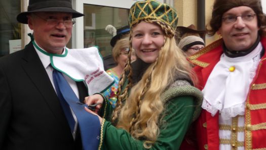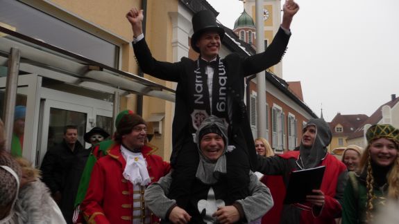 Trotz des langen Faschings muss auch dieser Fasching irgendwann sein Ende nehmen, und der Endspurt wurde traditionell am gestrigen Unsinnigen Donnerstag mit dem Zug durch die Stadt eingeläutet. Hoch- und manchmal auch tief – zu Ross bekundete seine Tollität Prinz Robert II. die Auftritte der letzten Tage, wohingegen sich ihre Lieblichkeit Prinzessin Vanessa I. sich nicht lange bitten ließ und dem 1. Bürgermeister Sepp Reiser ungeniert die Krawatte abschnitt.