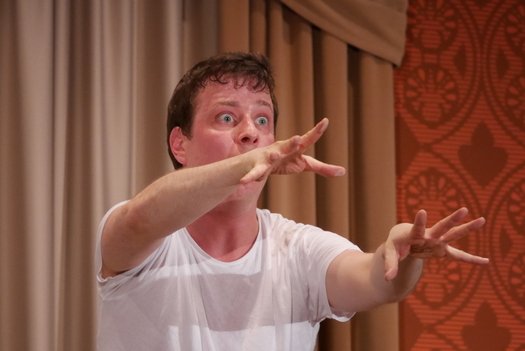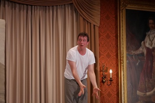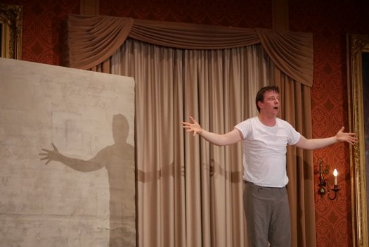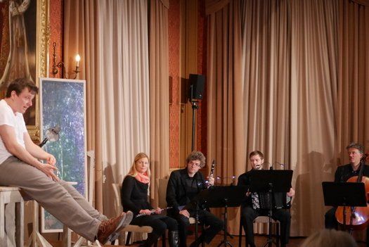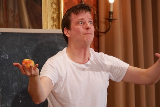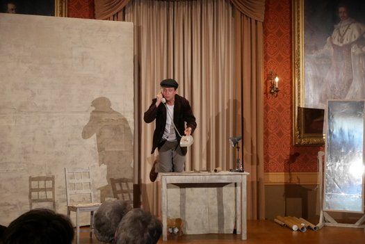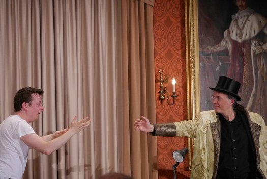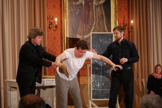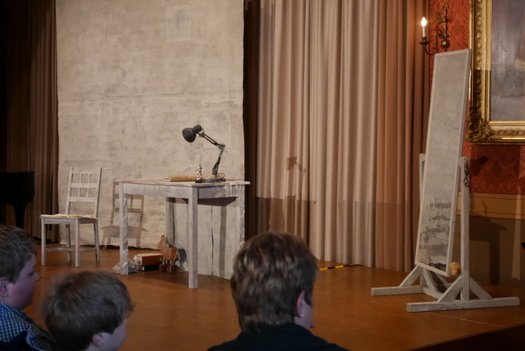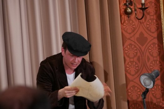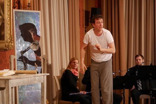 Ein spartanisches Bühnenbild (Peter Engel), mit Tisch, Spiegel, Lampe und grauer Bühnenwand, reichte jedoch Maximilian Nowka, in einer Doppelrolle die ganze Geschichte (Karoline Wernicke) des Kaspar Hauser aus der Sicht des Detektives Fritz Feuerbach zu erzählen. Unterstützung, nicht nur musikalischer Art, bekam er dabei von Christiane Steffens (Flöte), Christophe Gördes (Klarinette), Thomas Wollenweber (Cello) und Alexander Kuralionok (Akkordeon) mit Musik von Franz Schubert.