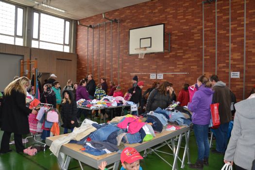 Denn draußen konnte man schon von weitem erkennen, dass beim Kinderbasar viel los war, denn alle Parkplätze rund um die Turnhalle waren belegt. Und in der Schulturnhalle standen die Käuferinnen in langen Schlangen vor den beiden Kassen. Frauen und auch Männer waren außerdem fleißig dabei, das breite Angebot zu sichten. Die Kleidung war ordentlich sortiert nach Unterwäsche, Oberbekleidung, Jacken und Mänteln und jeweils nach Größen. Auch viele Schuhe waren im Angebot, ebenso Spielzeug und einige Kinderfahrräder. Und auch die Kleinen, die mit Mama oder Papa kamen, wussten schon, was sie für sich selbst kaufen wollten.