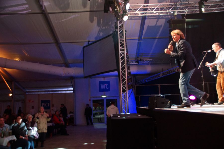 Im Anschluss hieß es dann: „Bühne frei für Hansi Hinterseer“. Mit seinem Charme, seinem Elan und seinem äußerst symphatischen Wesen sorgte der Schlagerstar für eine ausgezeichnete Stimmung. Nicht nur die zahlreichen weiblichen Fans waren hingerissen von Hansi Hinterseer, auch die männlichen Zuschauer sangen und klatschen bei den vielen bekannten Ohrwürmern mit.