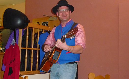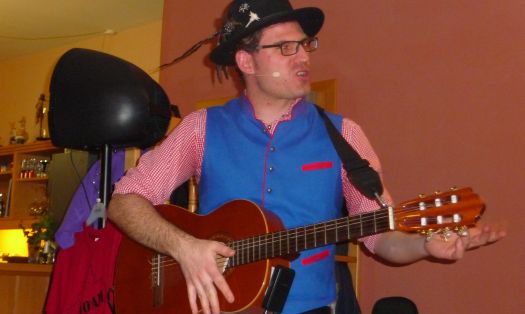 Selbst wenn die Themen manchmal alles andere als lustig waren, schaffte es der Gesellschaftskritiker bei aller Nachdenklichkeit sein Publikum im Unteren Wirt in Sandelzhausen auch zum Lachen zu bringen. Immer wieder erhielt er den begeisterten Applaus seines Publikums. Dies ging schließlich so weit, bis er auf den Tisch sprang und dort oben weitersang.