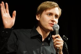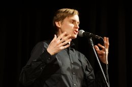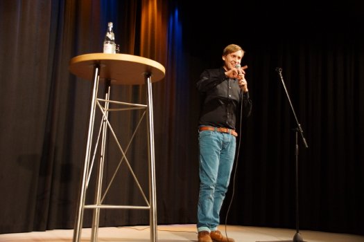Till Reiners amüsiert beim Theaterdonnerstag