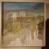 Das kleine feine Atelier über der Künstlerwerkstatt bietet die Möglichkeit Großformatiges anzugehen, der Strich wird geübter und gewagter. Auf der naturbraunen Nessel zu malen, erfordert einen anderen Blick und eine vorausschauende Einteilung. Hier wirkt das Braun als erdiger, tiefer Hintergrund, auf dem sich Figuren, Köpfe oder einfache organische Elemente tummeln. Freie Interpretationen, entlang einer grob komponierten Grundlinie, wie die Musiker des Jazz, es in der Künstlerwerkstatt praktizieren ist durchaus ein Bauplan dem Helene folgt.