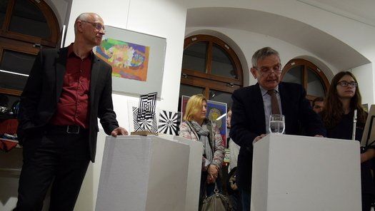 Bei der Eröffnung durch Kulturreferent Peter Feßl, kam dann entsprechend mehr Text. Der rührige ehemalige Lehrer wurde, trotz angegriffener Stimme, nicht müde, fast jedes einzelne „Kunststück“ zu beschreiben. Den Eltern der teilnehmenden Schüler, sprach er fast schon visionär ins Gewissen, die Frühwerke ihres Nachwuchses entsprechend zu würdigen. Natürlich können die Kunsterzieher der Realschule nicht jede einzelne Arbeit berücksichtigen, die so im Laufe eines Jahres entsteht. Der ausgestellte Querschnitt hat auf jeden Fall seine Berechtigung, in einer öffentlichen Galerie bewundert zu werden.
