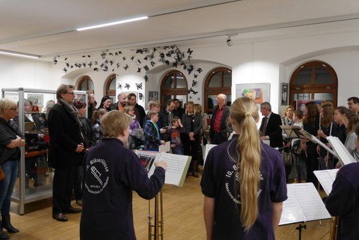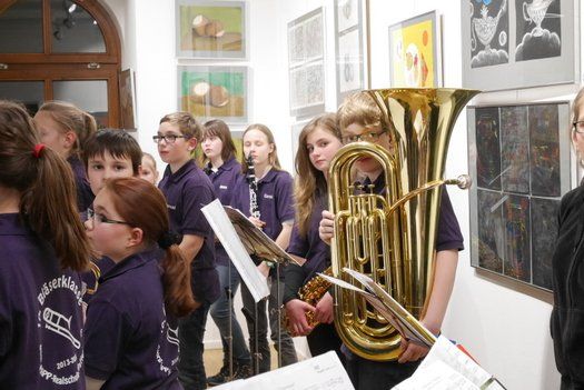 Die Bläserklasse der Realschule, auch lauter kleine Künstler, haben mit Hilfe von ihrem musikalischen Leiter Elmar Schröck, den konzertanten Teil der umfangreichen Eröffnungsfeierlichkeiten, gekonnt übernommen. Am kalten Buffet waren ebenfalls Schüler mit dem „catering“ betraut und trugen so zu einem gelungenen Gesamtkunstwerk im klassischen Sinn, bei.
