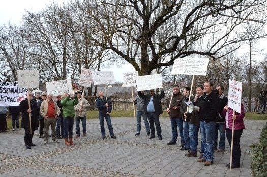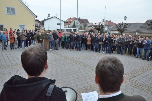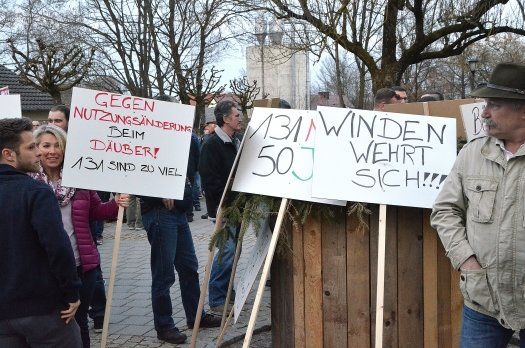 "Jetzt muss sich einmal unser Gemeinderat mitsamt dem Bürgermeister für seine Bürger einsetzen", forderte er unter dem Beifall der Demonstranten. Wer die Baupläne nicht gesehen habe, "wie da die armen Menschen eingepfercht werden", der könne sich das nicht vorstellen. Es gebe lediglich eine Küche, einen Aufenthaltsraum. "Jedes Maß an der Verhältnismäßigkeit ist da verloren worden." Jetzt seien die Politiker gefragt, schloss Klein seine Ansprache.